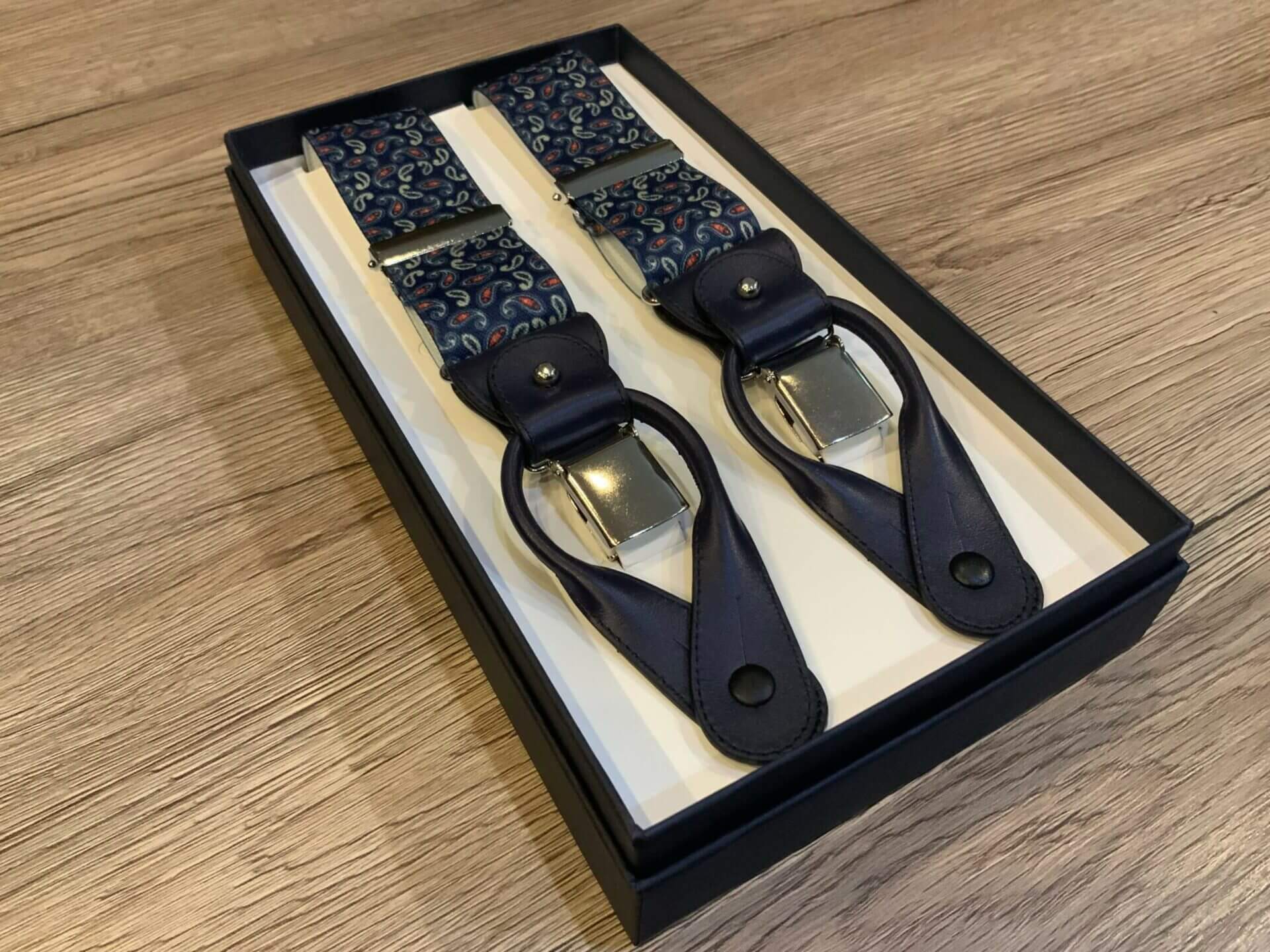 Le nostre bretelle sono realizzate artigianalmente in Italia e la scelta dei tessuti con relative finiture è rigorosamente di manifattura italiana.