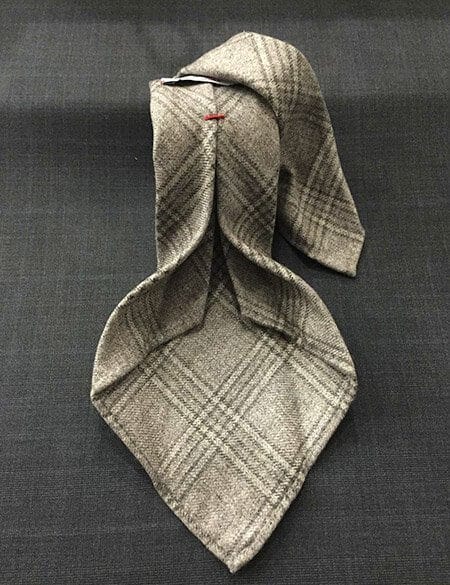 | Modello | cinque pieghe sfoderata con l’orlo del bordo della cravatta cucito a mano. |
