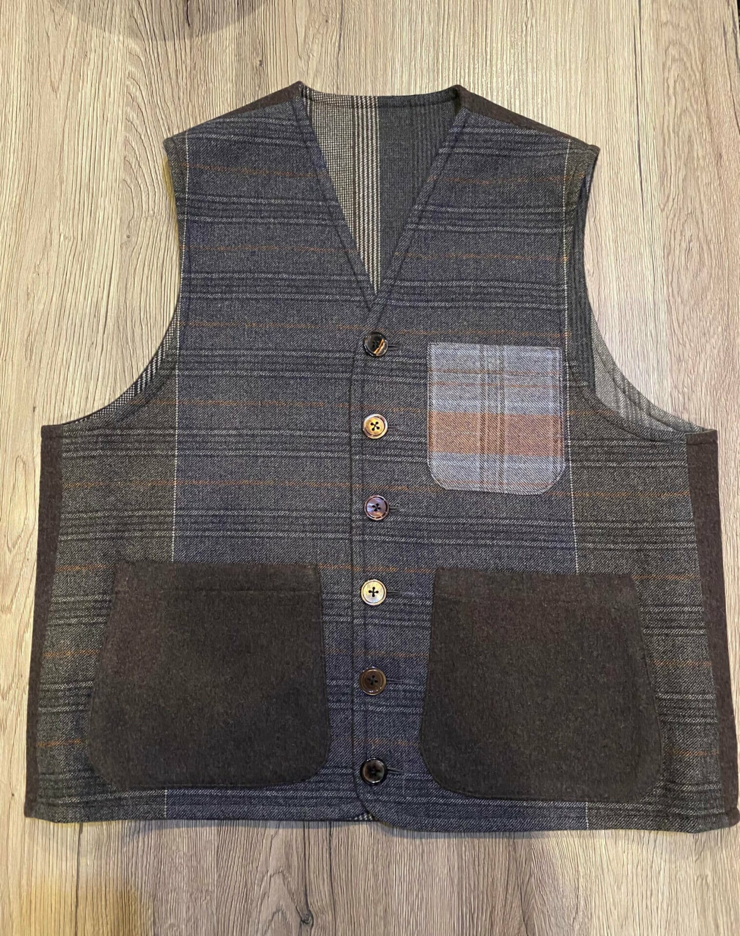 I nostri gilet sono tagliati a mano, cuciti a macchina e tutte le rifiniture sono fatte a mano da sarti che hanno mantenuto inalterato nel tempo la grande arte della tradizione sartoriale italiana. In questo caso parliamo di un gilet realizzato con diversi tagli in cashmere, per questo consideriamo questa realizzazione come pezzo unico ed esclusivo.