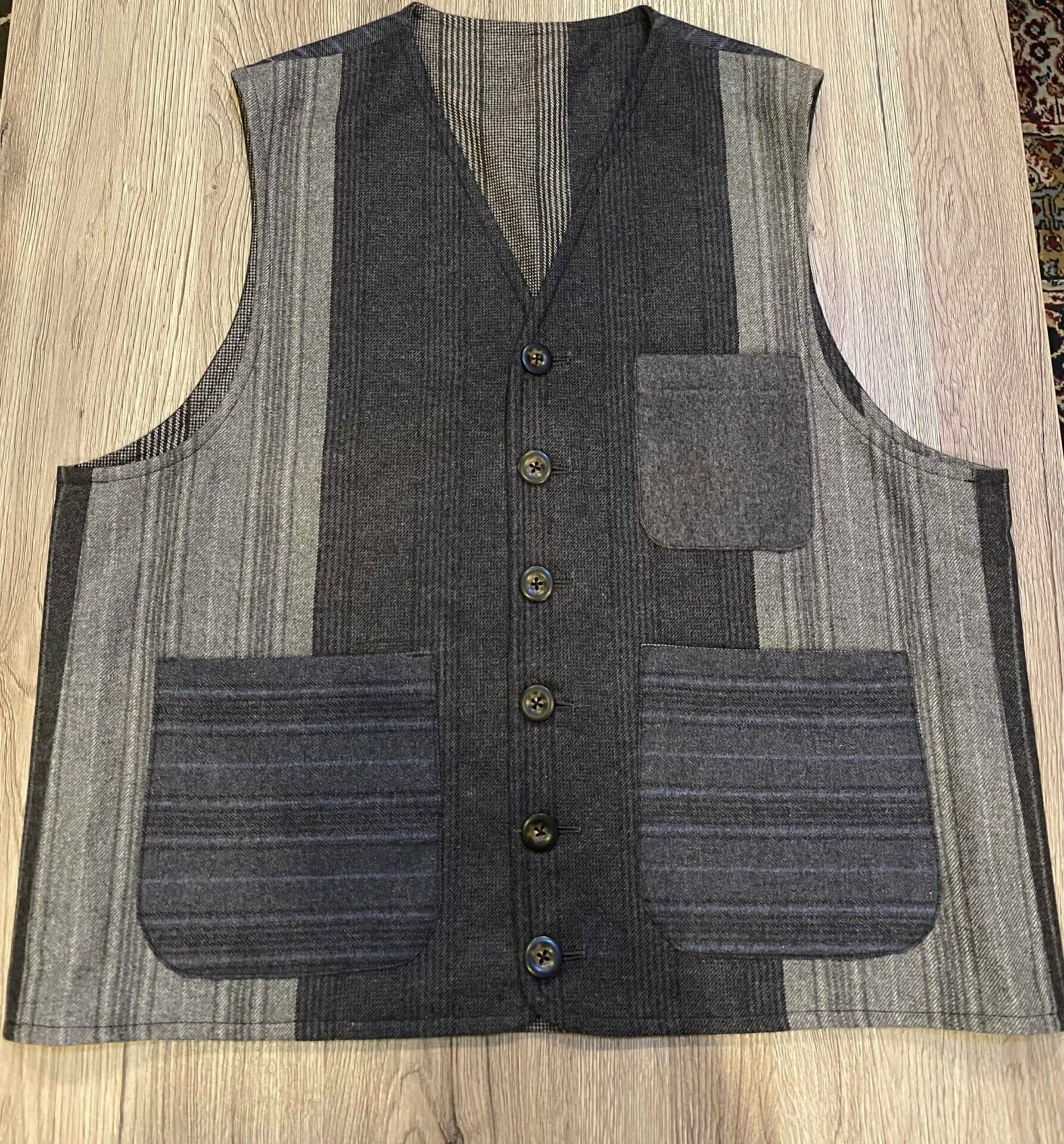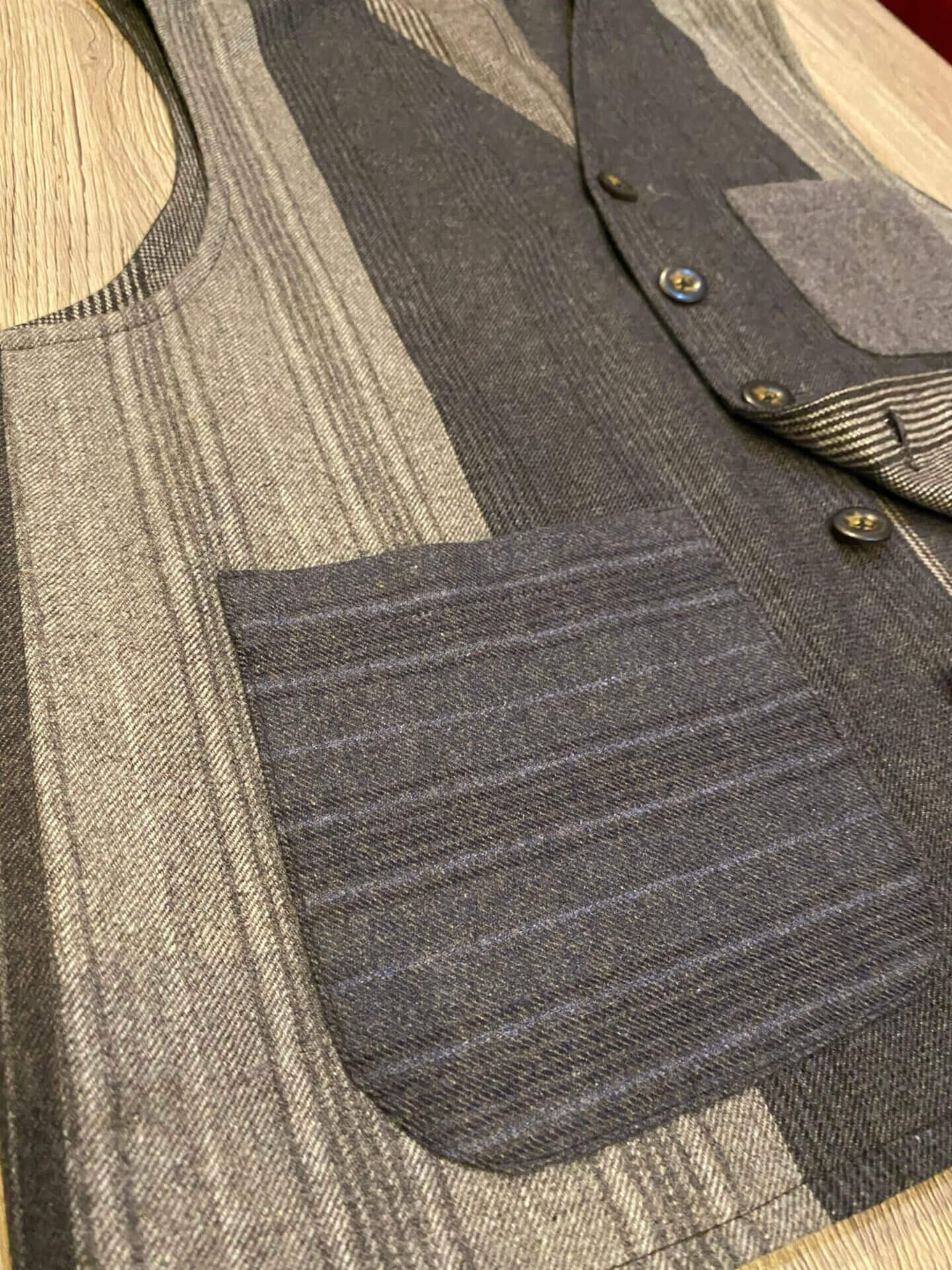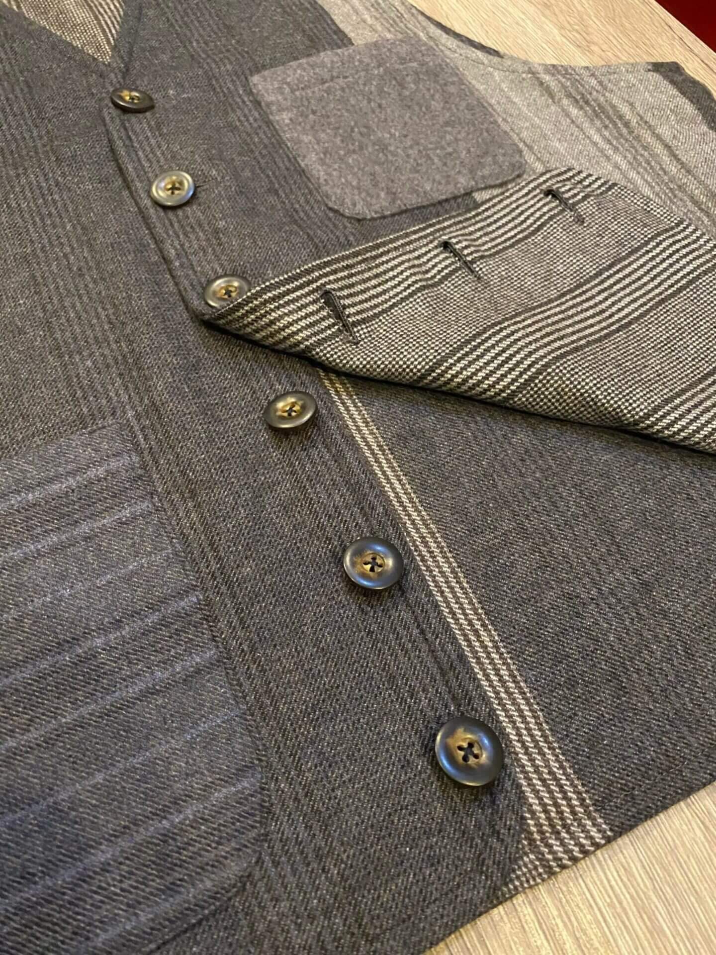 I nostri gilet sono tagliati a mano, cuciti a macchina e tutte le rifiniture sono fatte a mano da sarti che hanno mantenuto inalterato nel tempo la grande arte della tradizione sartoriale italiana. In questo caso parliamo di un gilet realizzato con diversi tagli in cashmere, per questo consideriamo questa realizzazione come pezzo unico ed esclusivo.