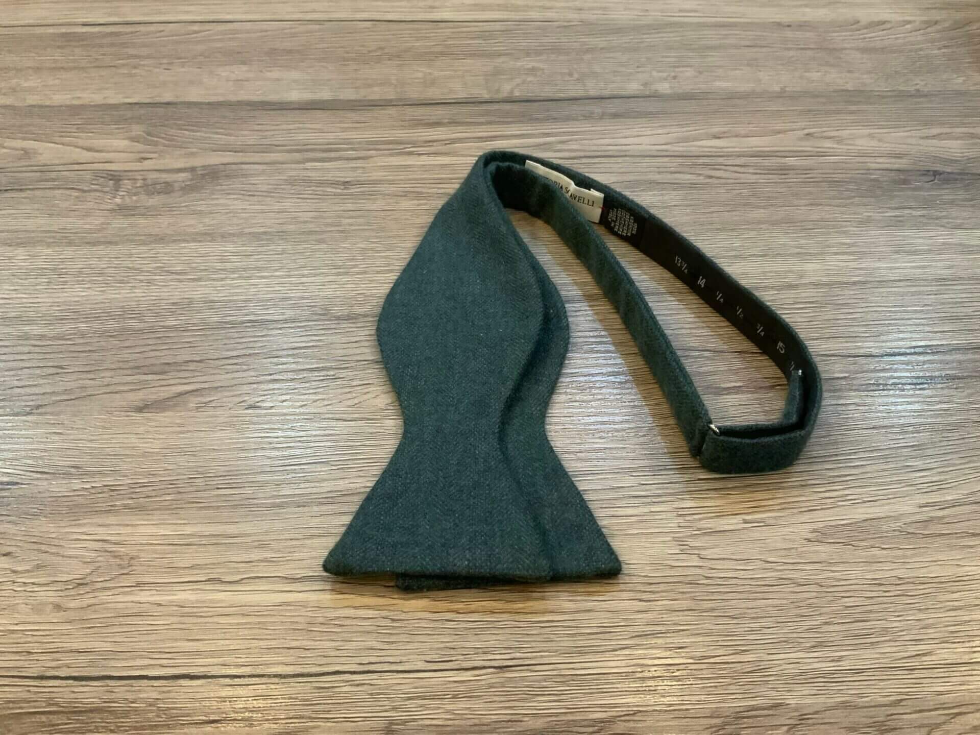 Papillon tagliato e cucito a mano da annodare e con collare regolabile, realizzato in cashmere 100% con Fondo in verde.